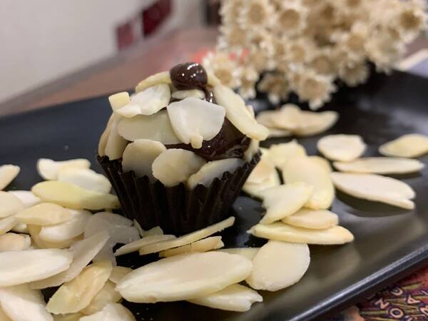 Fabricado com o delicioso brigadeiro meio amargo com amêndoas, finalizado com amêndoas.